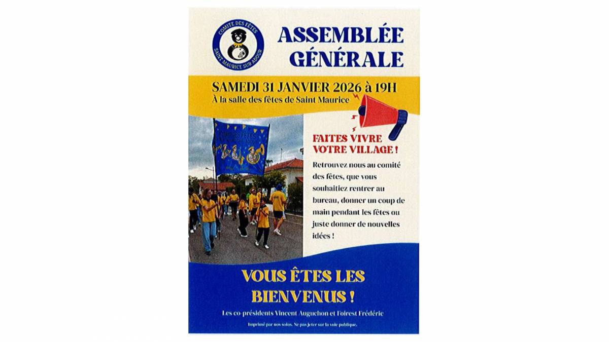 Assemblée Générale samedi 31 janvier 2026 à 19 h à la salle polyvalente de Saint Maurice