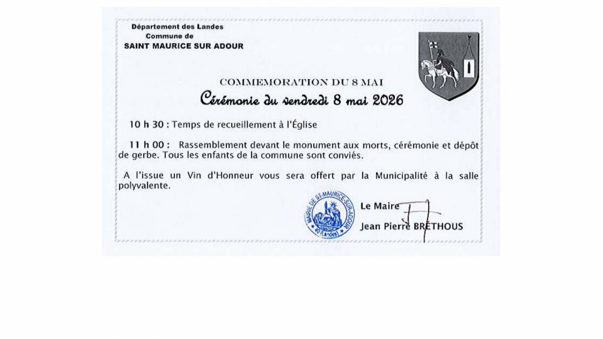11h00 : Rassemblement devant le monument aux morts, cérémonie et dépôt de gerbe. Tous les enfants de la commune sont conviés.