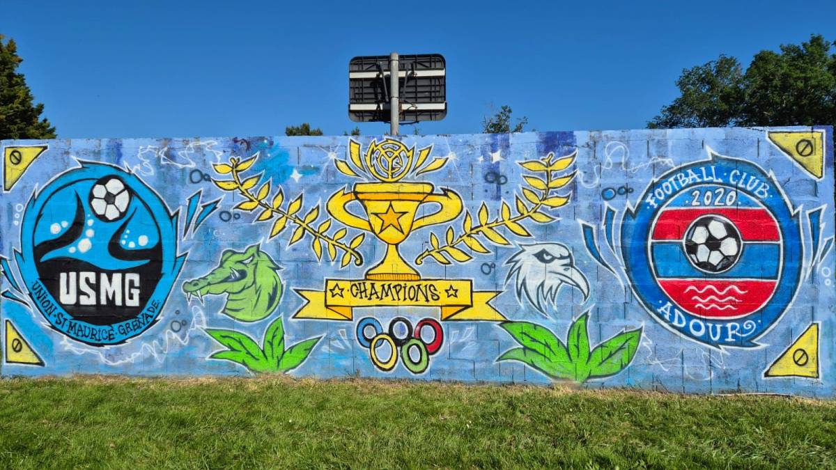 Cette fresque est un projet initié par l'école de foot du FC Adour, réalisée de main de maître par un artiste du territoire, Baptiste Lacroix, de l'associationn l'Oasis Adour. Elle représente les valeurs du sport et de l'olympisme avec les logos de l'USMG et du FC Adour.